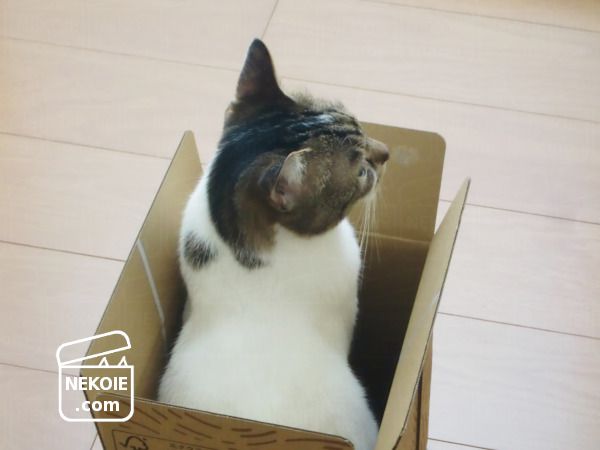 たまたま手に入ったダンボールに、いつものごとく猫がすっぽり。