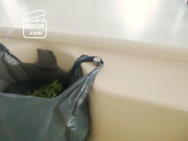 またポリ袋は浮かせているわけではなく、あくまで袋がバランスを崩して倒れないようにするための支え。あまり大きな負荷はかかっていないと考え、こんな方法で使うようになりました。