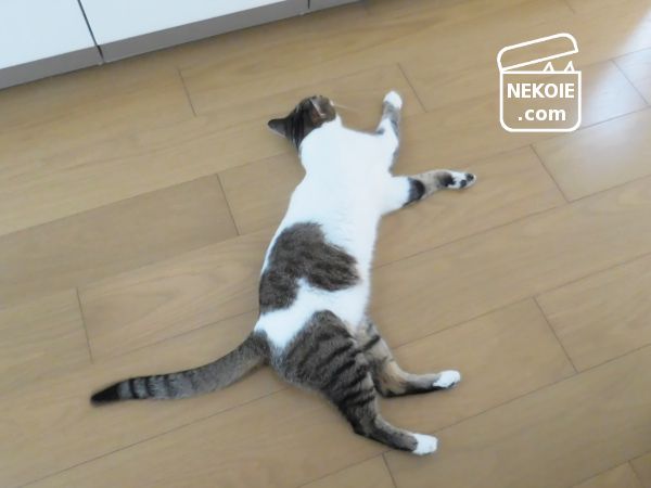 リビングのエアコンを稼働し始めたのでそちらにいてくれたら少しは涼しいはずですが、私が移動するたびくっついて来てはこの状態になっています。