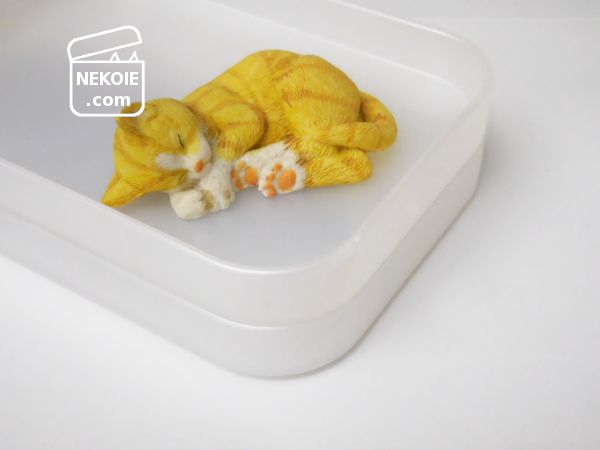 余談ですが、眠り猫は子どもの頃に祖母からもらったお土産の焼き物。置物のようなので手放そうとしたこともあるのですが、今はしごと道具として活用しています。今回、白いトレイだけではカメラのピントがあわなかったのでのせてみました。