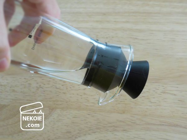 本来上の写真のような使い方(指で押さえずに傾けること)は推奨されていませんが、この状態でも、一滴たりとも中身がこぼれることはありませんでした。