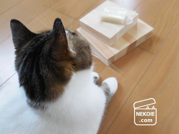 切り餅の小袋が、キャットフードのサンプルに見えるのでしょうか。作業中もずっと傍らに待機していました。