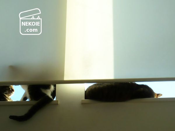 今日の関東は日差しがあたたかく、窓辺は広範囲を猫たちが占拠。