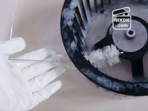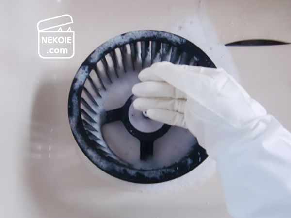 シロッコファン掃除をしたときのブログにも書いたけれど、大量の水をためて行う浸け置きの代わりに、対象物に泡をまとわせて浸け置きするという方法をとるようになりました。