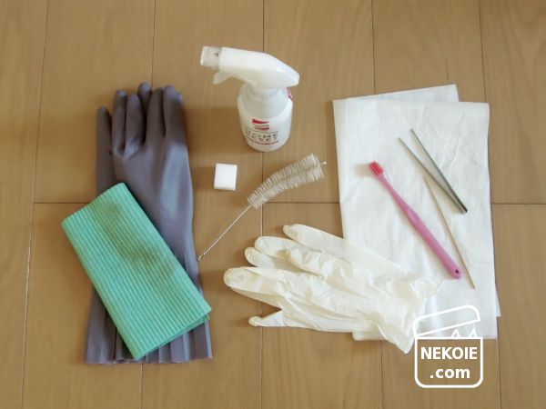 個人的にこだわりがあるのは、ニトリルゴム手袋と二枚のクロスくらい。あとは筒洗いブラシの形状を重視。他は千円もあれば最寄りのお店ですべてそろいそうだし、家にあるものを寄せ集めるだけでもなんとかなりそうな気がしました。