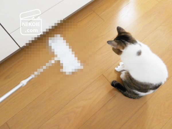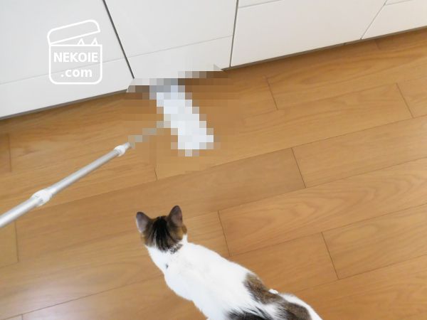 本日の猫と、例のクイックルワイパー。これも花王の製品でした。