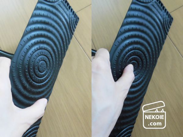 シートを取りつけた本体と床の密着部分はふかふかの立体クッション。これもクイックルワイパーの特徴で、シート全面を無駄にせず掃除がしやすいと感じるところでした。