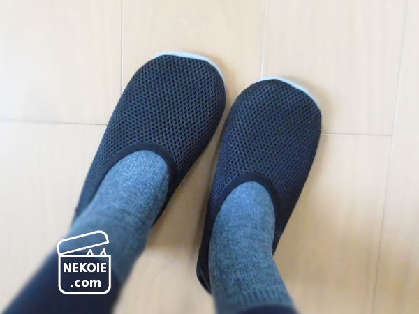 このうちスリッポンとスリッパの裏側は猫の毛が付着しにくい素材なので、わが家では本当に重宝します。綿素材の靴下などは快適だけれどやはり猫の毛はつきやすく落としにくいのが悩み、それを覆う形でカバーできるのがとても便利でした。