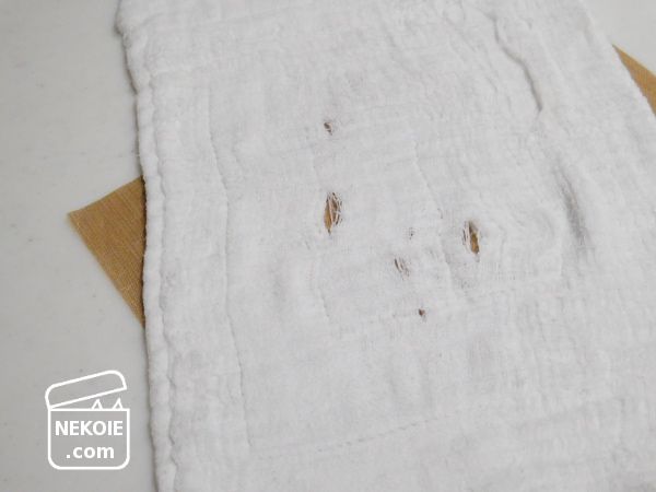 基本は手拭きにしていたものの「鍋つかみ」などの代用に使うこともあり、ちょっとした突起などに引っかけてはビリッといくこともあまたたび。