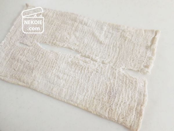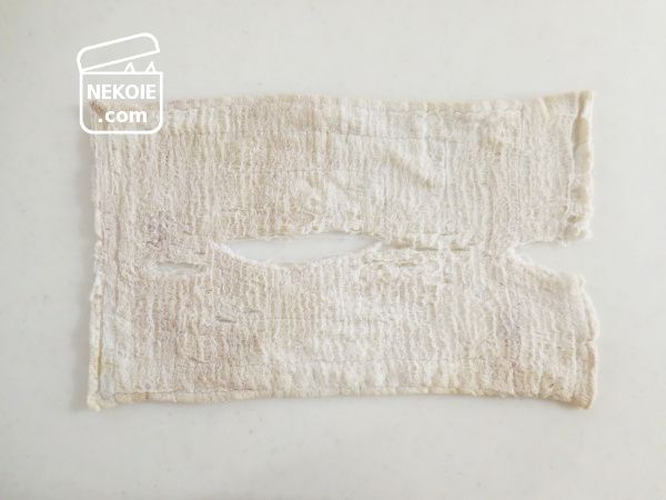 このひと手間は十年以上続けているのですが、そのための道具には色々なものを取り入れており、つい先日までは処分前の蚊帳ふきんだったんです。