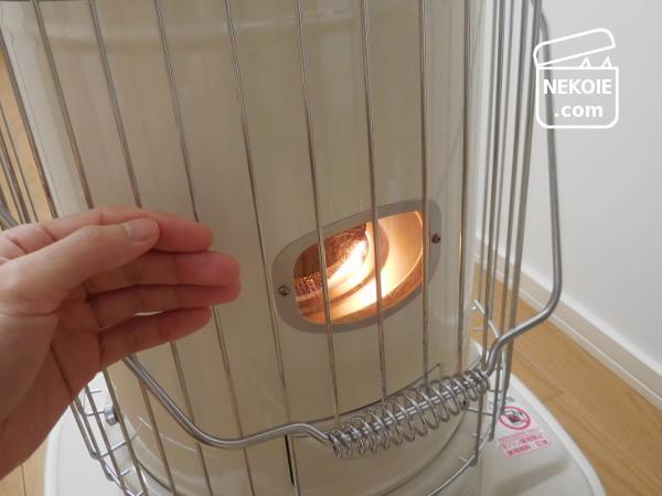 周囲の金属柵部分も言われてみればほんのり熱を持っているかな?程度で、消す直前(点火数時間後)に触っても平気。上に行くほど熱くなりますが、猫の目線で「横からの接触」は今のところそんなに心配していません。