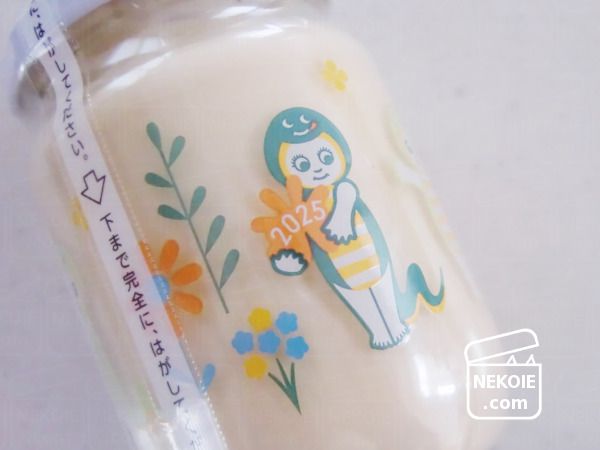 瓶のデザインはプリント(わずかにぷっくりとした凹凸のある印刷)ですが、そう簡単には剥がれません。過去の瓶は(煮沸可能な瓶だと想定し)何度か食洗器にもかけていますが問題ありませんでした。