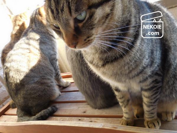 皆が外の世界にご執心の中、なぜかこっち向きに座ってしまった個性派。