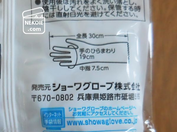 サイズは食器洗いなどをするにはほんの少し短めに感じたけれど、カシニーナとの差は5cm程度でした。もともと洗濯物を干す作業にゴム手袋の長さは必要ないので、私の目的に対しては問題ないかなと。