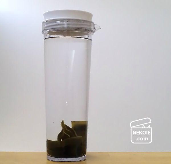 - 密閉瓶に水を1L、乾燥昆布10~20g(好みで)を入れる。