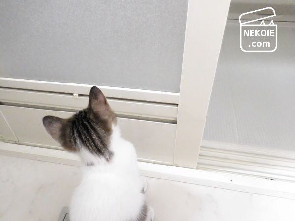 こちら側でガラスを拭く動きにあわせて、むこう側の肉球が動く……これ以上ないくらい尊い。