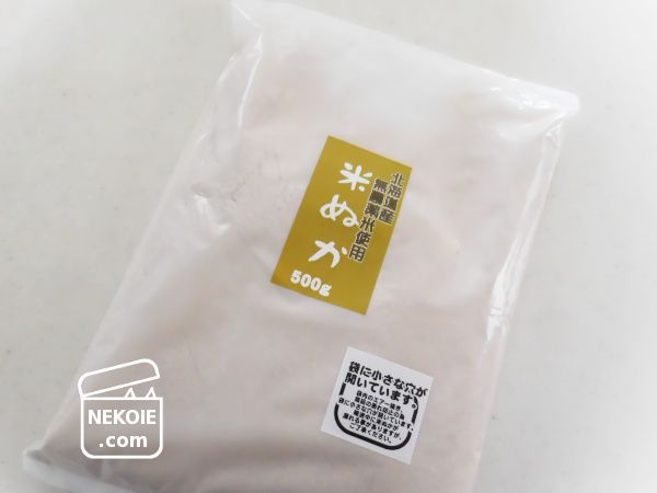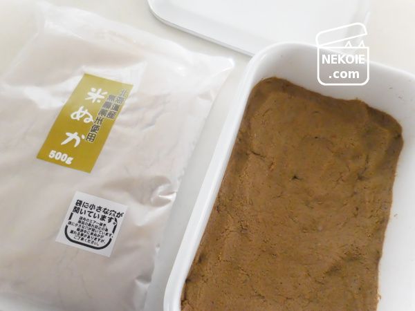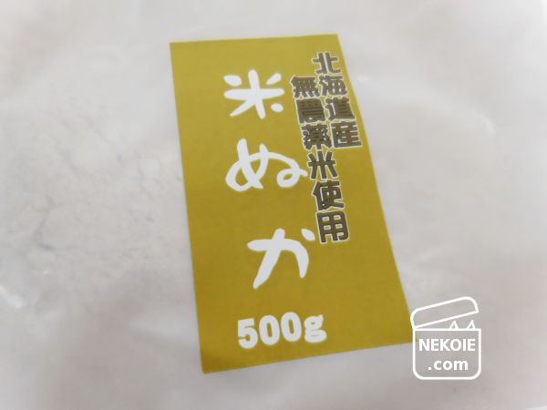 製造から日がたっているようなら煎りぬかにするつもりだったのですが、新鮮なものが手に入ったという判断で生ぬかのまま使うことにしました。