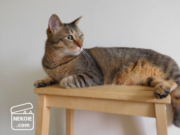 収納家具の上。猫の飲み水の、すぐうしろです。