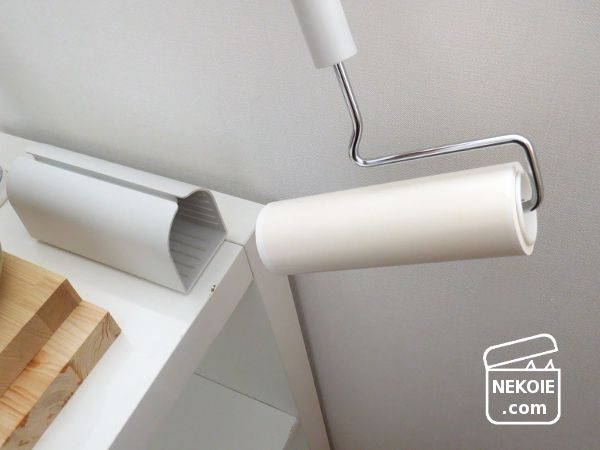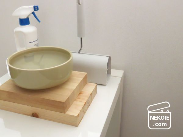 あらゆるファブリック類から猫の毛を取り除く方法はたくさんあるけれど、ちょっとした瞬間にササッと使うには、コロコロが一番手軽。猫たちがいるリビングにも一つ常備していて、その置き場所は昨日の写真にも写っていました。