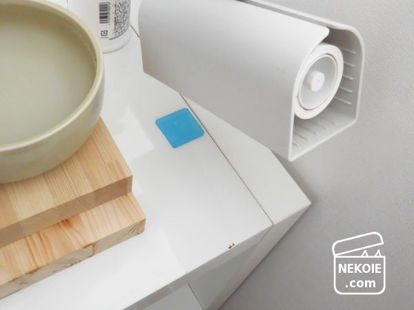 ぷにぷにした素材で粘着性があり、洗うことで再利用が可能なもの。もともとパソコンや机まわりで使っていた古いアイテムですが、ものを減らす過程で余った分をこういった場所で使いはじめました。