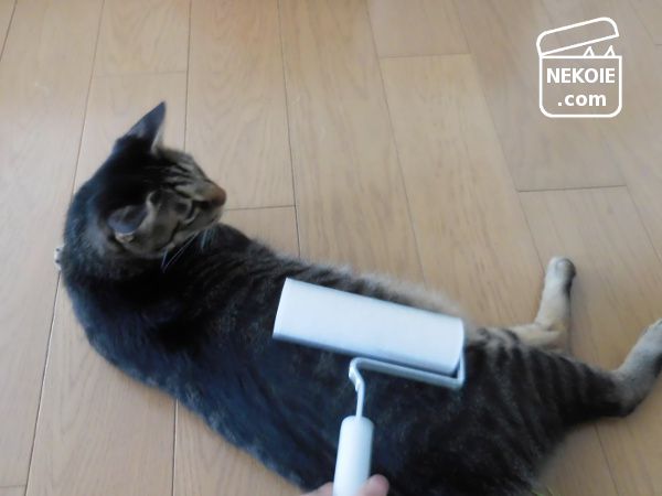 洗濯物などをちょっとコロコロしたあとに、粘着力の弱まったコロコロを猫に使います。