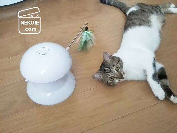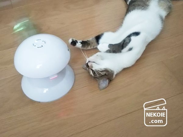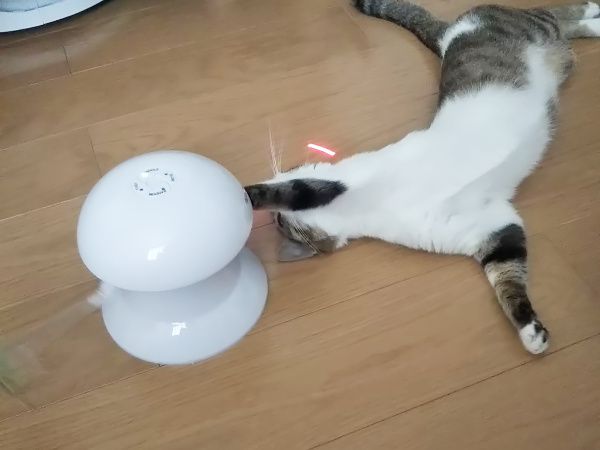 なんとか私を起こそうを画策する彼。限界までは遊びにつきあうけれど、最終的には電動猫じゃらしにまかせて先に寝かせていただきます。