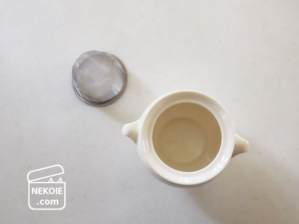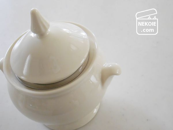 本来の用途はシュガーポットです。茶こしが収まることは想定されていないので、蓋裏の突起がひっかかりました。
