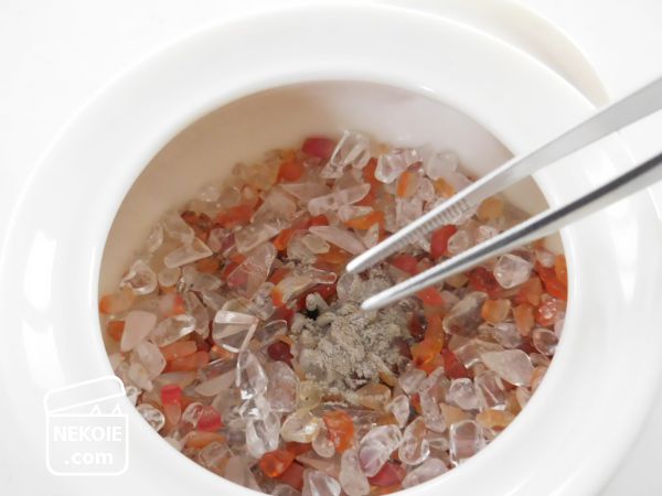 ちなみに天然石を香炉灰の代用にすると、灰は石の下に沈んでいきます。上のほうに残ってしまった分も、うつわを少しゆすってあげると消えるように落ちていきます。