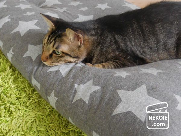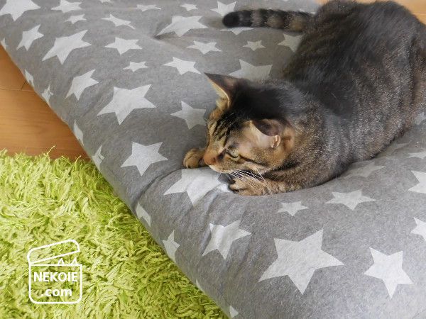 ただし、彼はどんなに猫じゃらしが縦横無尽に動き回っても、クッションの上から下半身を下ろしません。横着すぎるところが私そっくり…喜ぶべきところでしょうか?