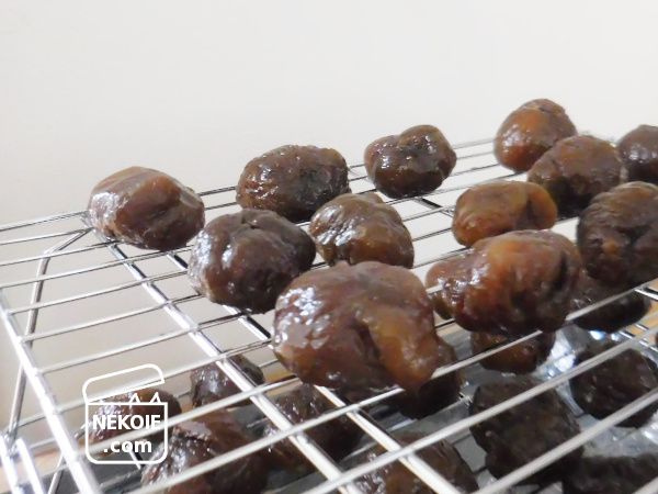 この後で甘露煮をつくり、年始のおせち用に分けて、渋皮煮と一緒に冷凍。更に数日かけてマロングラッセを仕込む流れになりました。
