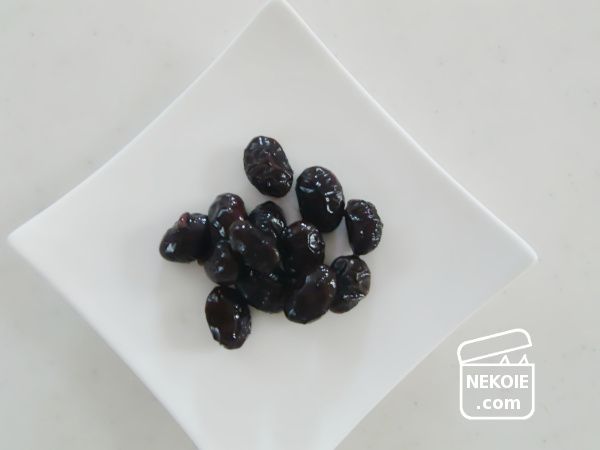 コツがあるとすれば、乾燥させることで豆の水分が抜けてやや硬さが増すので、最初にしっかり柔らかく煮ておくこと。とはいえいつもの煮豆の感覚で問題ありませんでした。