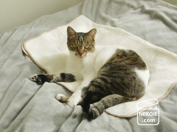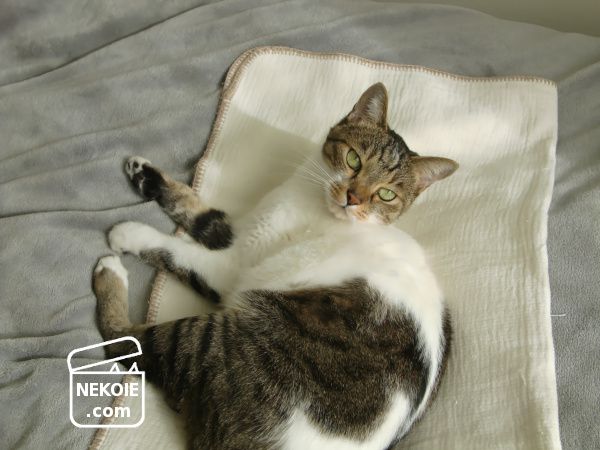 ブランケットが敷かれているのは部分的なのに、あえてこの場所に寝そべってくれるので気持ちがいいのだと思います。