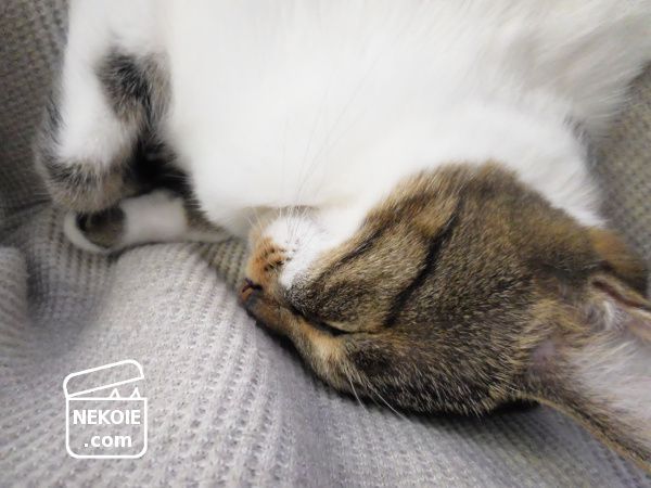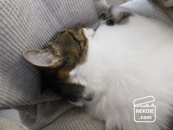 彼が寝ているのは私のひざ(太もも)の上。