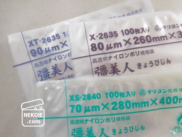 ただ真空パックをする際、数回に一度は空気もれを起こすようなら、最初から少し安心感の高いものを選んでおくに越したことはありません。個人的な計算ではそれでも節約になる結果には変わりなかったので、今後は90μmのものを選ぼうかなと思っています。