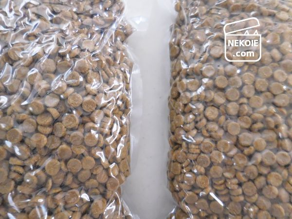 それでもちょっと気になる部分もあったんです。それは以前にも書いたのですが、ちょっときつめの真空状態にすると空気もれを起こしやすいこと。キャットフード(ドライ)の粒の硬さに、袋の厚みが負けてしまうこと。