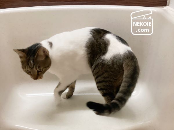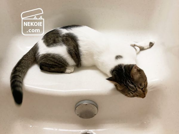 お湯を抜いた直後の浴槽はとても温かくて、弟猫にとって快適な寝床。
