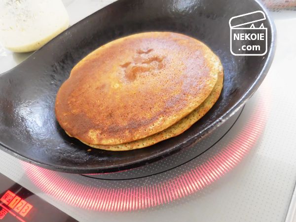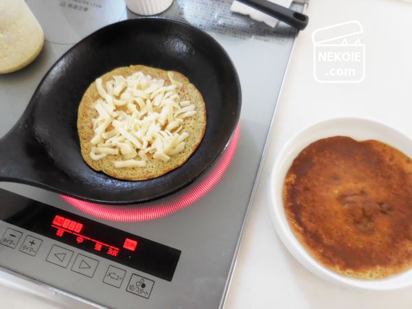 ソッカはもともと生地が薄いので(パンケーキほど厚くふくらまないので)この方法でも内側のチーズがとろけて、焼きたてにかぶりつくとカリカリとろとろでたまらないおいしさ。