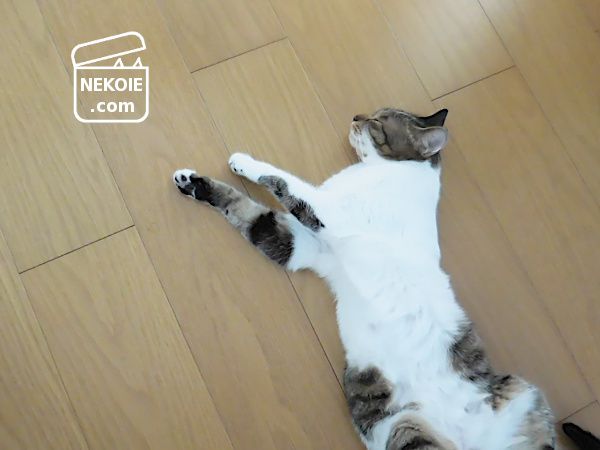 ここ数日は気温が高めで、猫の寝方も夏仕様に戻っています。