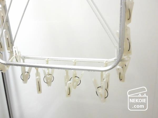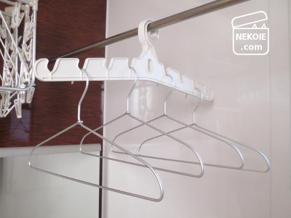 これまで使っていた8連ハンガーと違い、本体を支えるフックが一ヶ所だけになったので、左右のバランスをとりながら洗濯物を掛けなければいけないのが不便かなと感じますが、それ以外は問題なさそうでした。