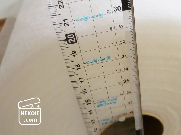 ロールの直径は20cm以上あります。もはや抱き枕。ただし片手で持てるくらいには軽いです。