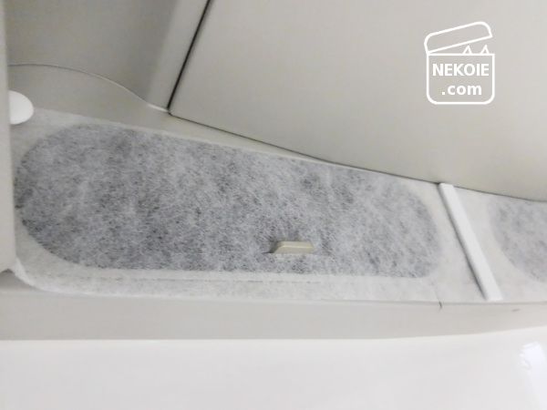 過去にはもっと薄いフィルター(不織布の排水口ネットを分解したものなど)を使っていたこともあるのですが、それよりも厚めの新フィルターは形状を安定させやすく設置が楽。風圧で外れてしまう心配もなくなりました。何よりその厚みのおかげで逃がす汚れも減ったはず、と信じています。