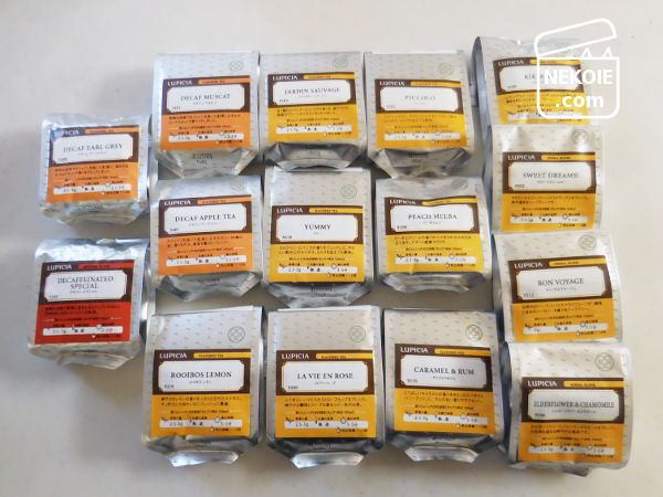 ヤミー / キャラメル&ラム / ラビアンローズ / ジャルダン・ソバージュ / ピッコロ / デカフェ・アールグレイ / デカフェ・スペシャル / デカフェ・マスカット / デカフェ・アップルティー