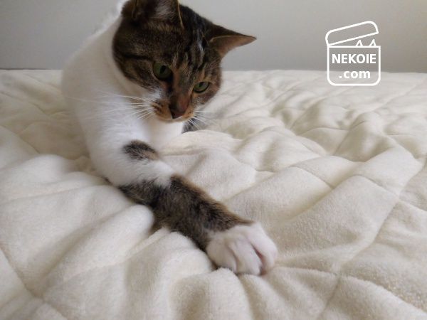 起毛シーツ(敷パッド)の下に私が手をすべりこませて、もぞもぞと動かしているところ。