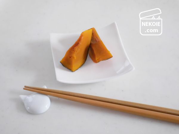 昨日の宣言どおり、朝からかぼちゃを蒸しました。蒸し野菜の利点の一つが、猫にもお福分けしやすいこと。