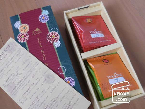 こちらは二品が昨年とは違うものになっていました。いつものお茶にはお得感の高いリーフタイプを選ぶので、おまけには少し楽をできるティーバッグ。お茶自体はどれも定番で、一部はノンカフェインなのも重宝しています。