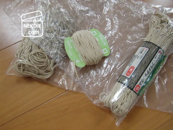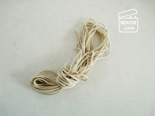 ここ数年は細いポリエステル製の飾り紐を使っていたのだけれど、つい先日からマクラメ用のひもへとつけ替えてみたところです。