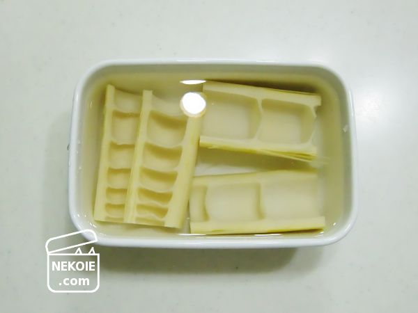 - シュウ酸が溶けだした水を捨て、軽く洗ったら浸水させて完成。