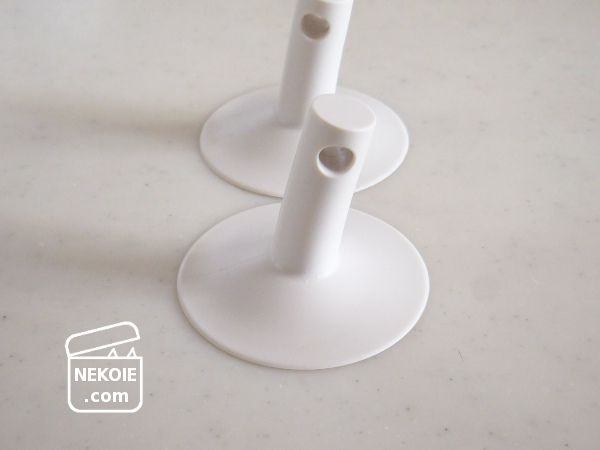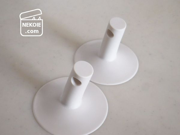 変形をリセットした方法は、シンプルに熱湯に浸すだけ。寝る前にボウルの中に吸盤二つを入れて、そこに熱湯を注ぎ入れ、あとは一晩放置。この形状だと浮いてくることもありませんでした。お湯の温度はどんどん下がってしまうはずだけれど、時間をおいたおかげか写真のとおりの結果です。