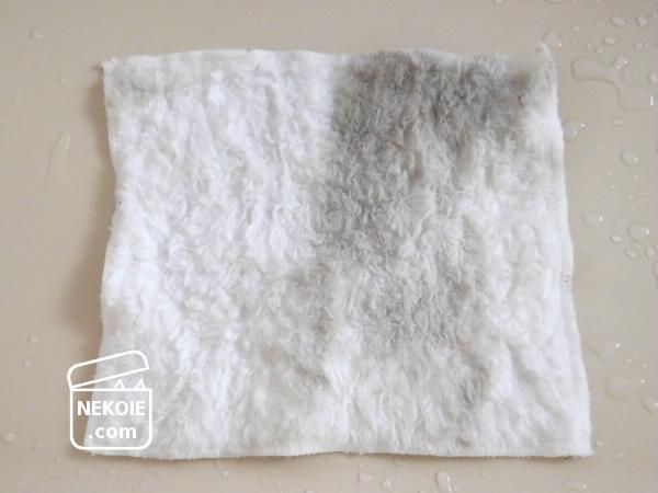 洗剤いらず、水だけで汚れを落とす!という説明はマイクロファイバークロスに似ています。色は数種類あったのですが、汚れが見えやすいほうがいいので、いつもどおり白を選びました。