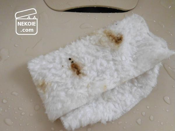 こんなギトギト系の油汚れもキレイに雑巾から落ちたからです。この白さが保てるなら、干しっぱなしの状態を見ても憂鬱な気持ちになりません。